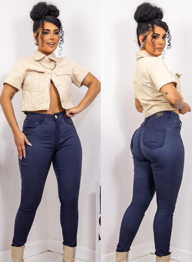 A calça feminina skinny de bengaline com elastano que levanta o bumbum é uma peça que combina conforto e estilo. O bengaline é um tecido elástico que se adapta bem ao corpo, proporcionando uma silhueta ajustada e modelada. O efeito "levanta bum bum" é uma característica popular, que ajuda a acentuar as curvas.