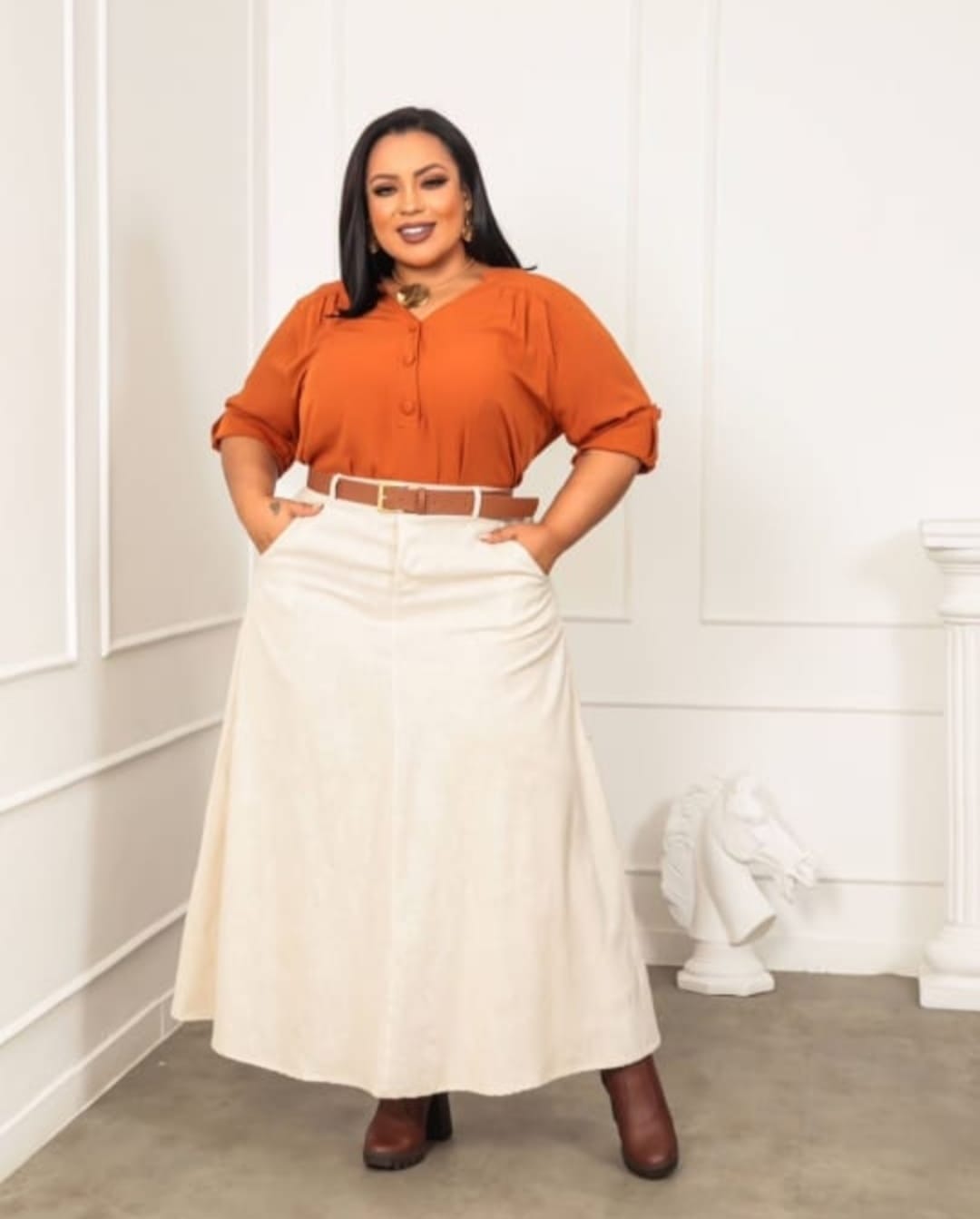 A saia de linho longa que veste até o tamanho G2 é uma ótima escolha para quem busca conforto e estilo. O linho é um tecido natural que permite a circulação de ar, tornando a peça ideal para climas quentes. Além disso, seu caimento fluido confere um toque de elegância ao visual. Essa saia pode ser facilmente combinada com blusas de diferentes estilos, desde as mais casuais até as mais sofisticadas, além de acessórios que realçam o look.